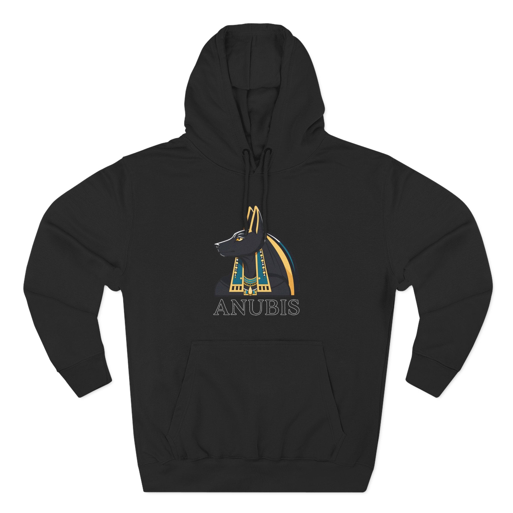 This striking hoodie features a detailed graphic of Anubis, the ancient Egyptian deity. Depicted with his iconic jackal head, adorned with a regal gold and blue usekh collar and headdress, this design captures the enigmatic essence of the guardian of the underworld. Anubis is revered as the god of mummification, the afterlife, and a guide for souls on their journey to the weighing of the heart. This powerful graphic is a celebration of ancient mythology and spiritual significance, perfect for those who appreciate history, mystery, and unique cultural symbolism.