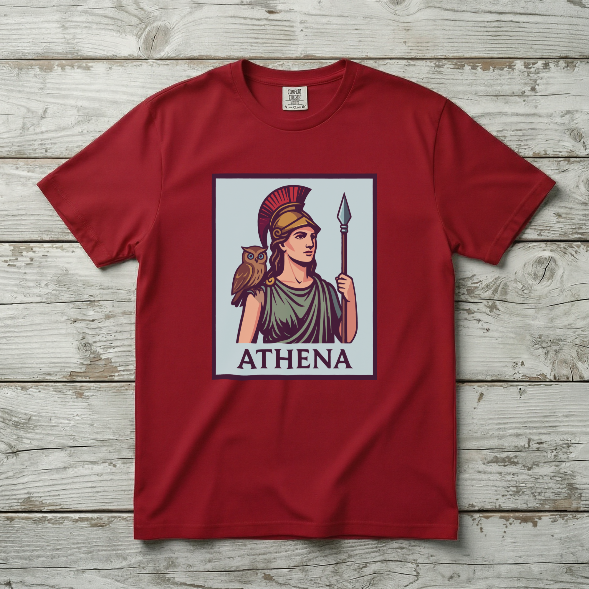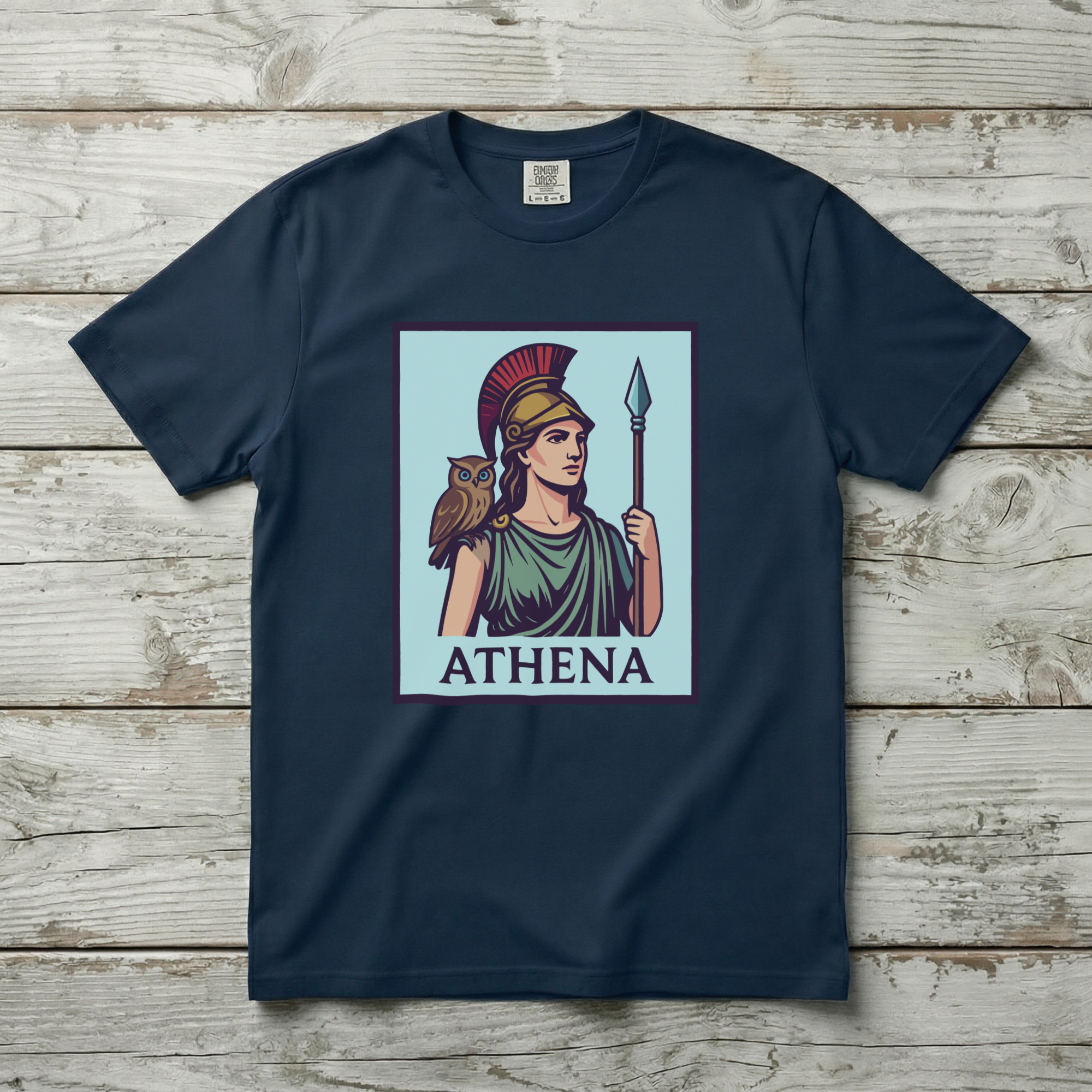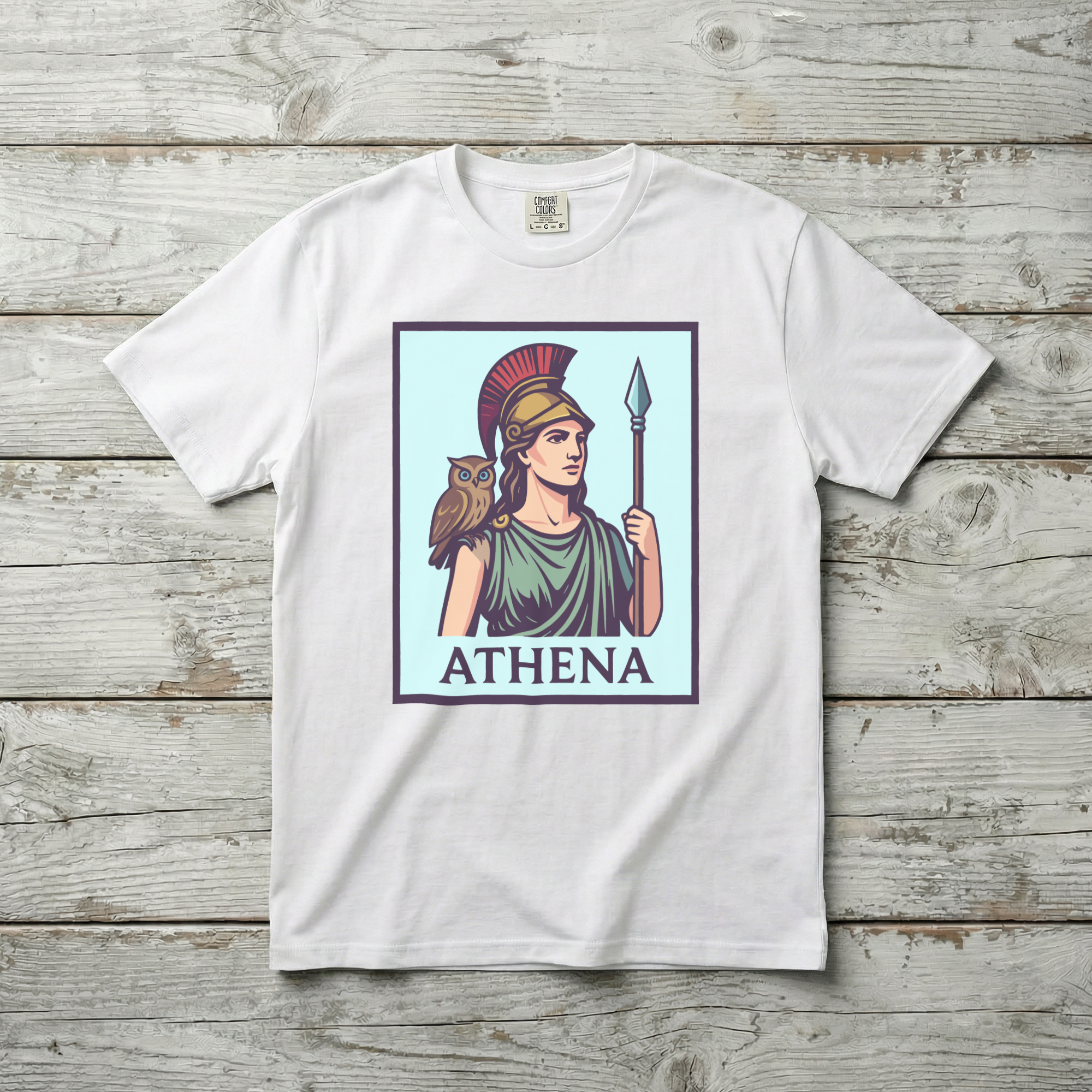 Pair this t-shirt with jeans or shorts for a classic casual look, or layer it under a jacket for a more styled approach. The design is versatile, allowing for various styling options. Embrace the wisdom and strength embodied by Athena with this stylish and meaningful t-shirt.