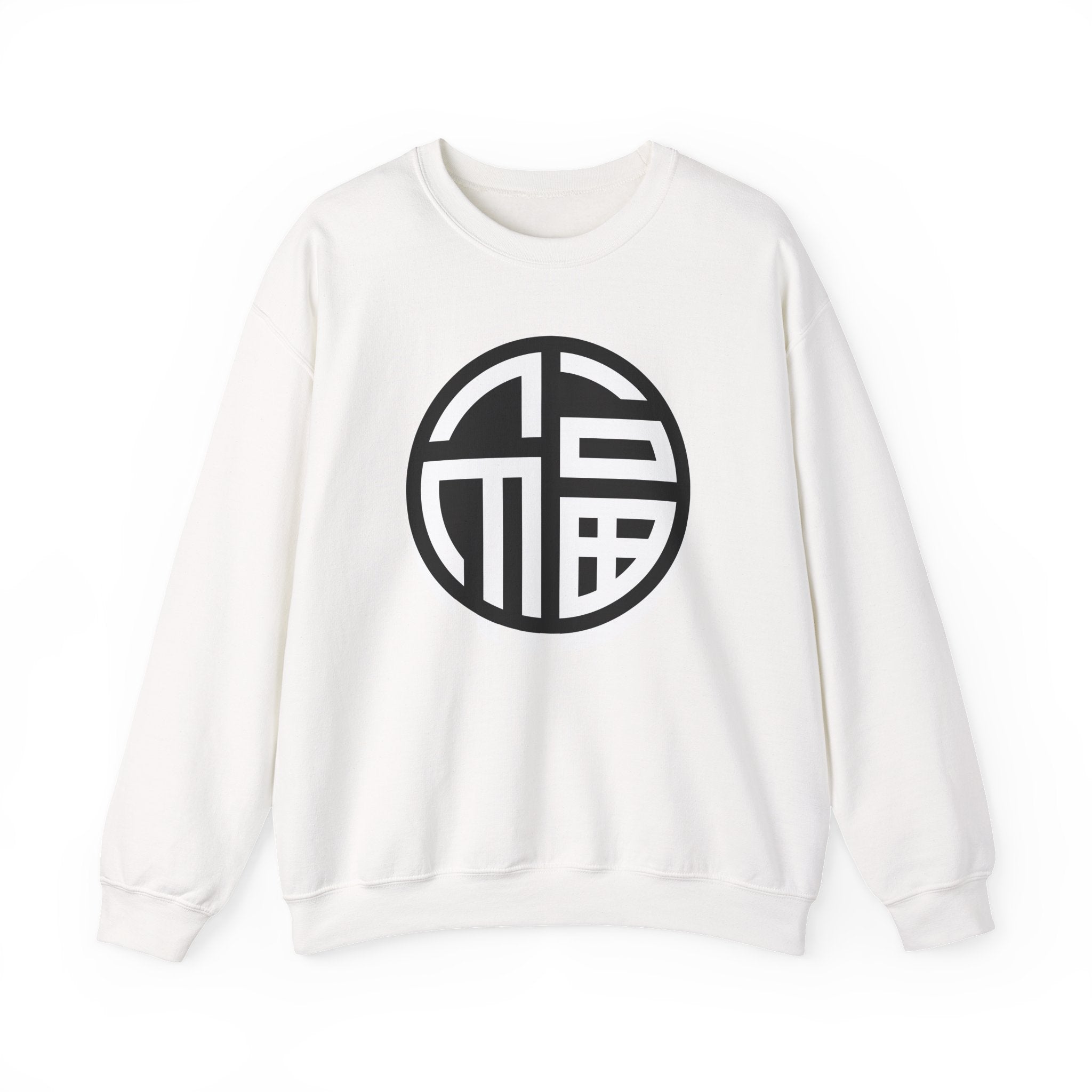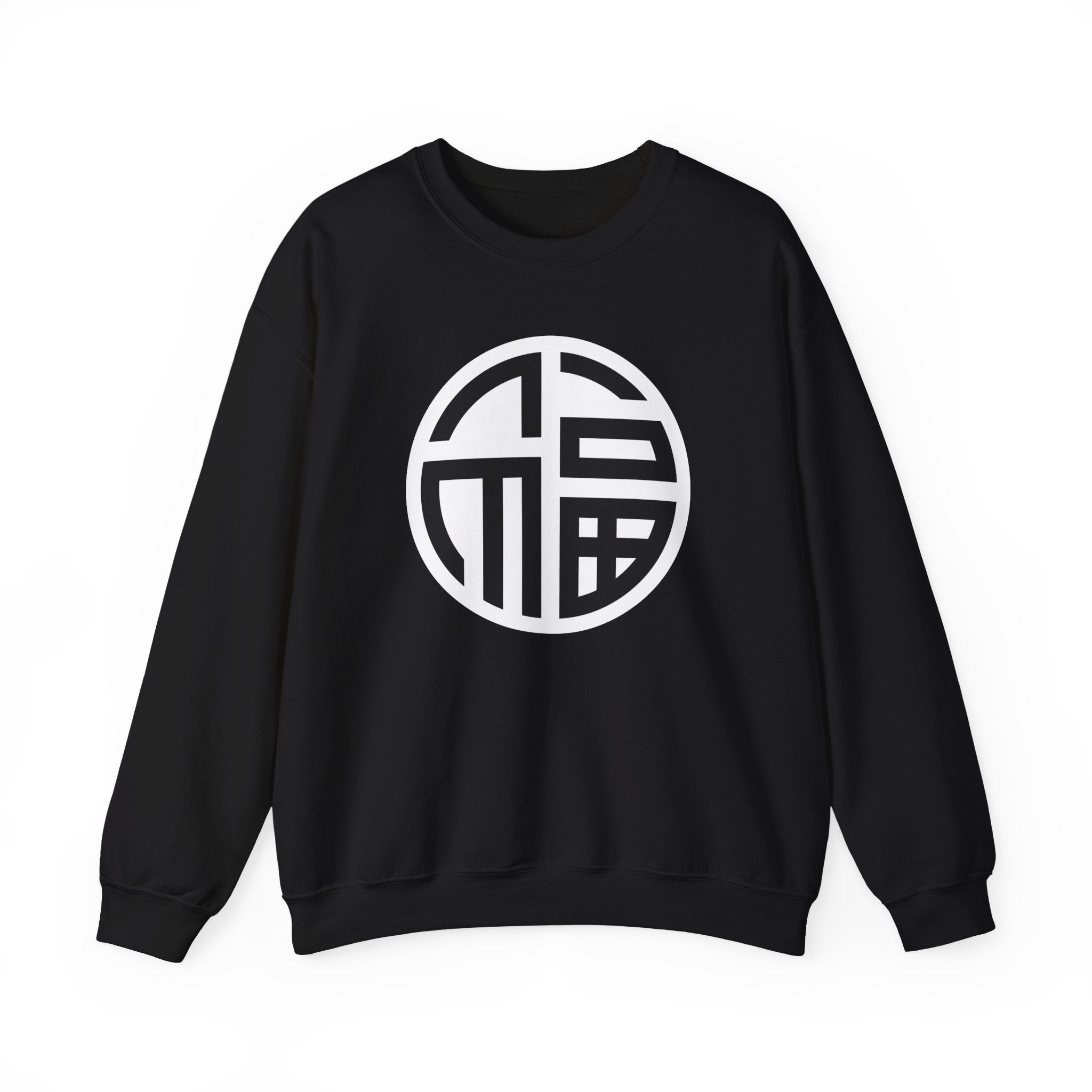 This sweatshirt showcases a minimalist white graphic of the Chinese character '福' (Fú), artfully stylized within a circular design on a black background. The '福' symbol is a powerful representation of fortune, good luck, blessings, and prosperity in Chinese culture, often displayed to invite happiness and abundance. The circular rendition adds a contemporary flair, signifying completeness and harmony. This unique graphic is perfect for those who appreciate cultural symbolism, elegant design, and positive affirmations. It's a subtle yet profound statement piece for any wardrobe.