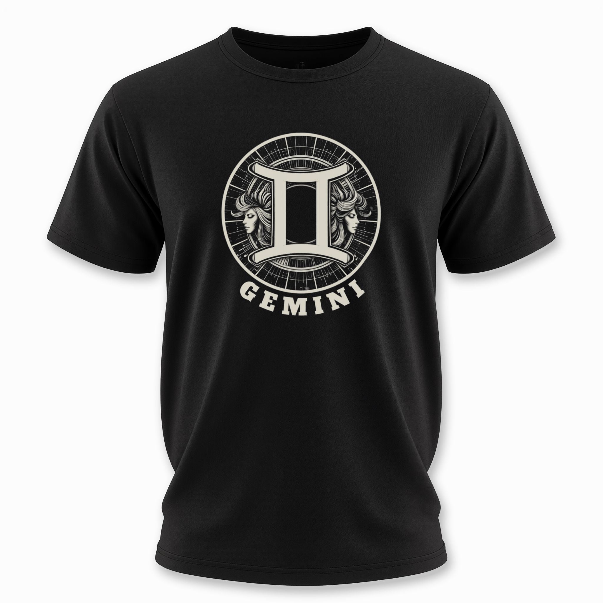 Gemini Twins - Unisex T-shirt ✨ Design Inspiration: This t-shirt showcases a monochrome design featuring the Gemini zodiac symbol encircled... Read more