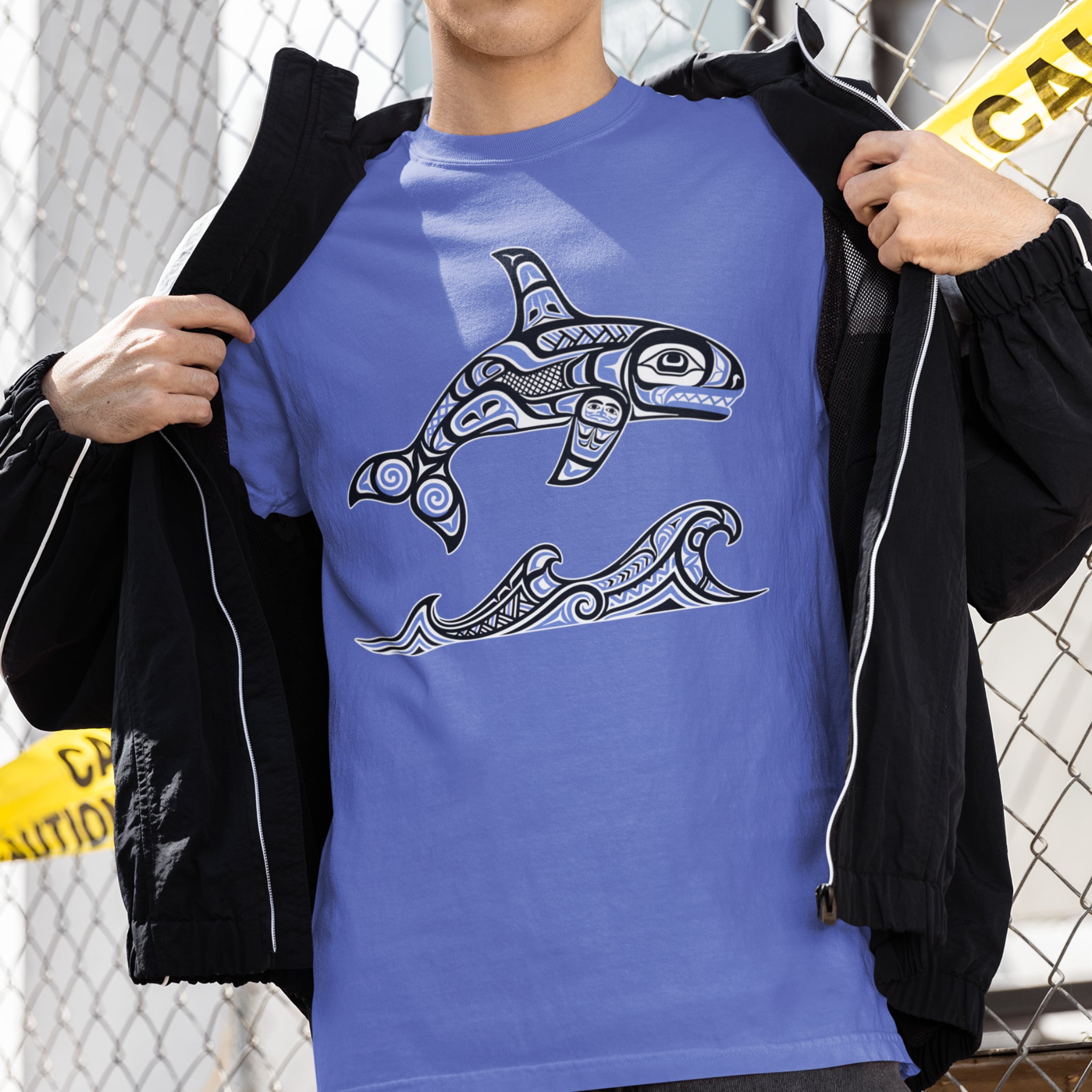 Pair this t-shirt with jeans or cargo shorts for a casual yet conscious look, or layer it under a light jacket to highlight its intricate design. It's perfect for expressing an appreciation for nature and rich cultural heritage. The design is versatile, allowing for various styling options. Wear this stylish and culturally significant t-shirt to share the powerful symbolism of the Orca and the beauty of Pacific Northwest art.