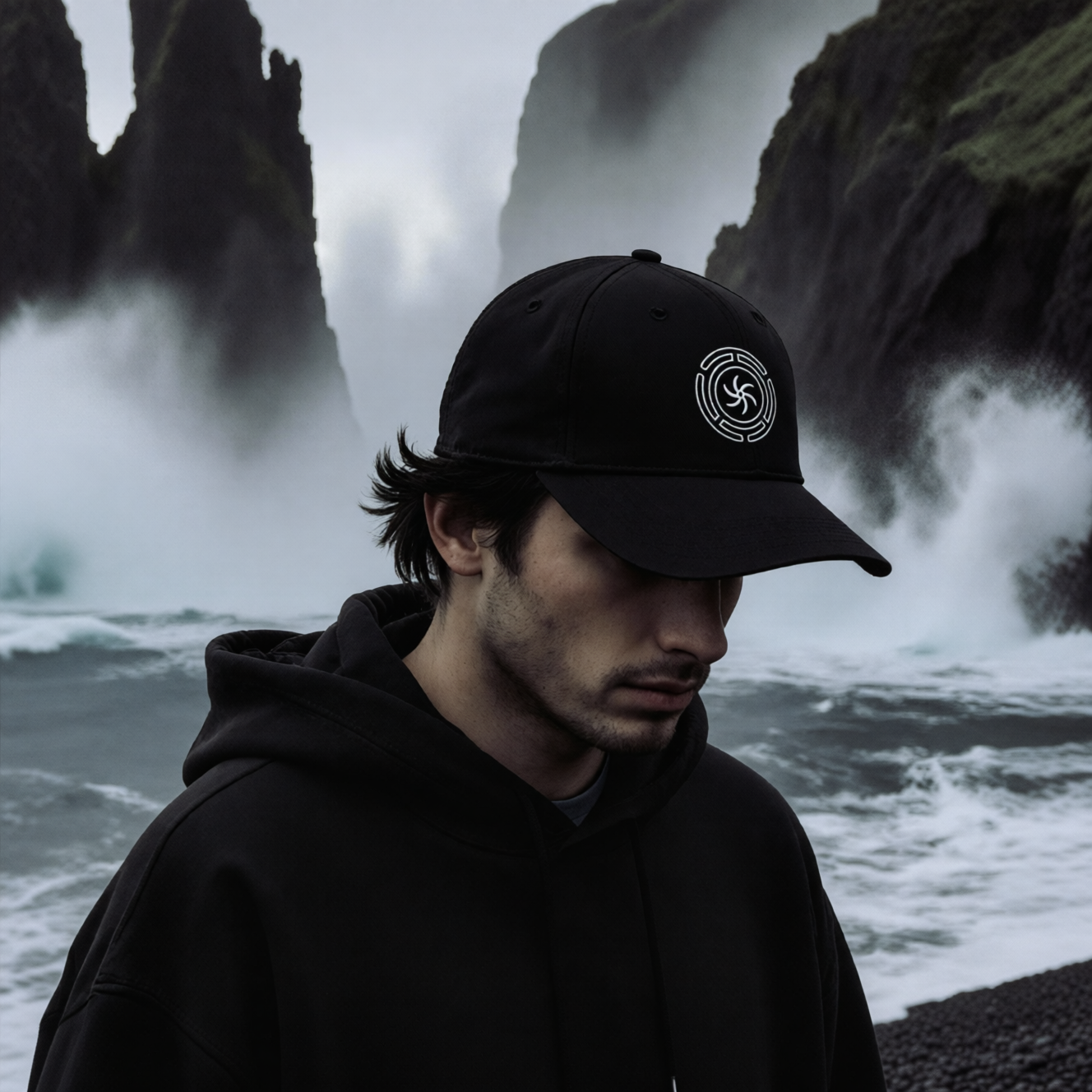 This hat features the ancient and powerful symbol known as Hekate's Wheel, or Strophalos, intricately embroidered in white against the dark fabric. This mystical emblem, associated with the Greek goddess Hekate, represents a labyrinth of self-knowledge, the triple goddess, and the journey through life's mysteries. Its central spiral signifies the power of the soul and transformation, while the concentric, broken circles evoke the paths and choices encountered on one's spiritual journey. It's a profound statement piece for those who resonate with ancient wisdom, magic, and the occult. This design is both meaningful and eye-catching, making it a unique addition to any spiritual or alternative wardrobe.