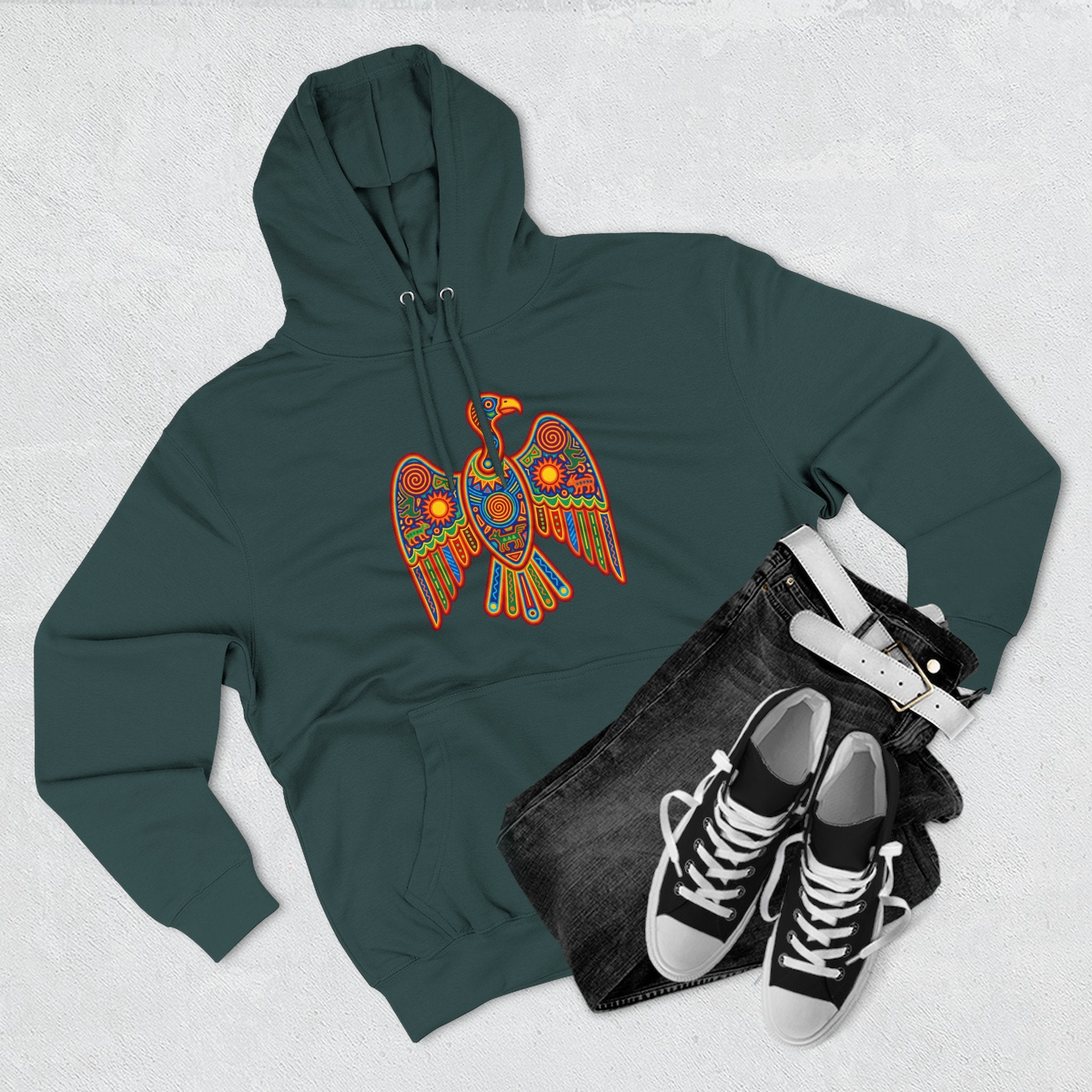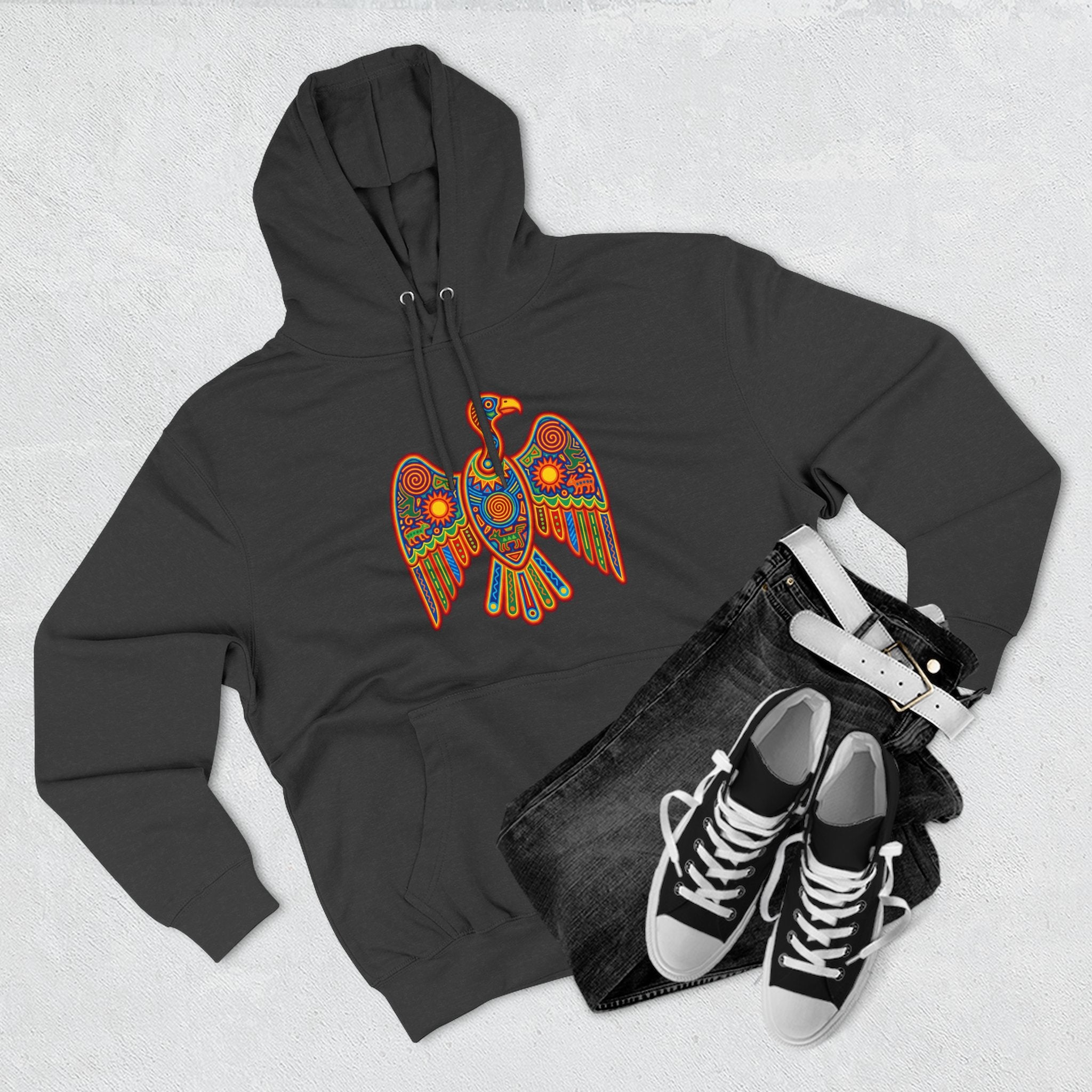 Pair this striking hoodie with your favorite denim or casual bottoms. The design is versatile, allowing you to showcase your appreciation for unique art and powerful symbolism. Embrace the spirit of the Ancestral Eagle with this meaningful and visually stunning hoodie.