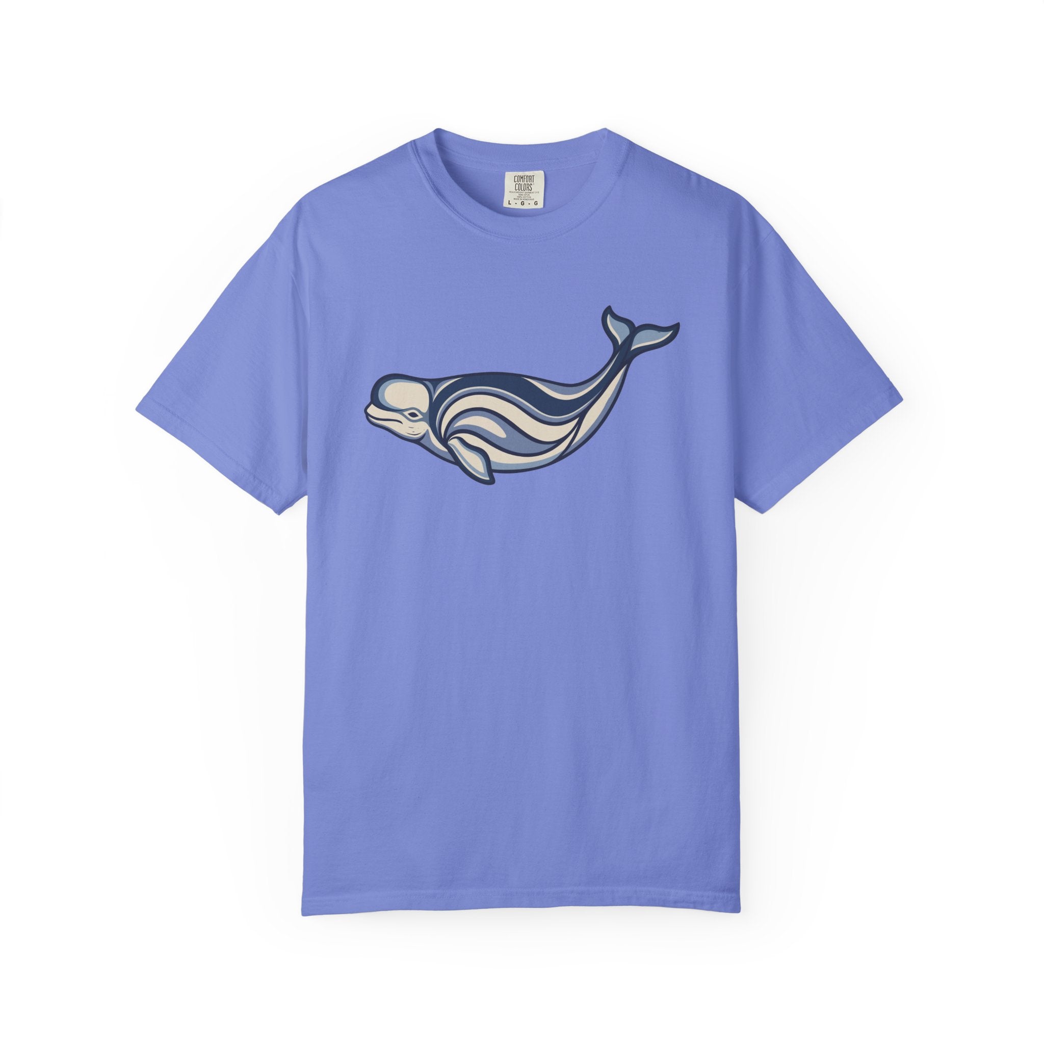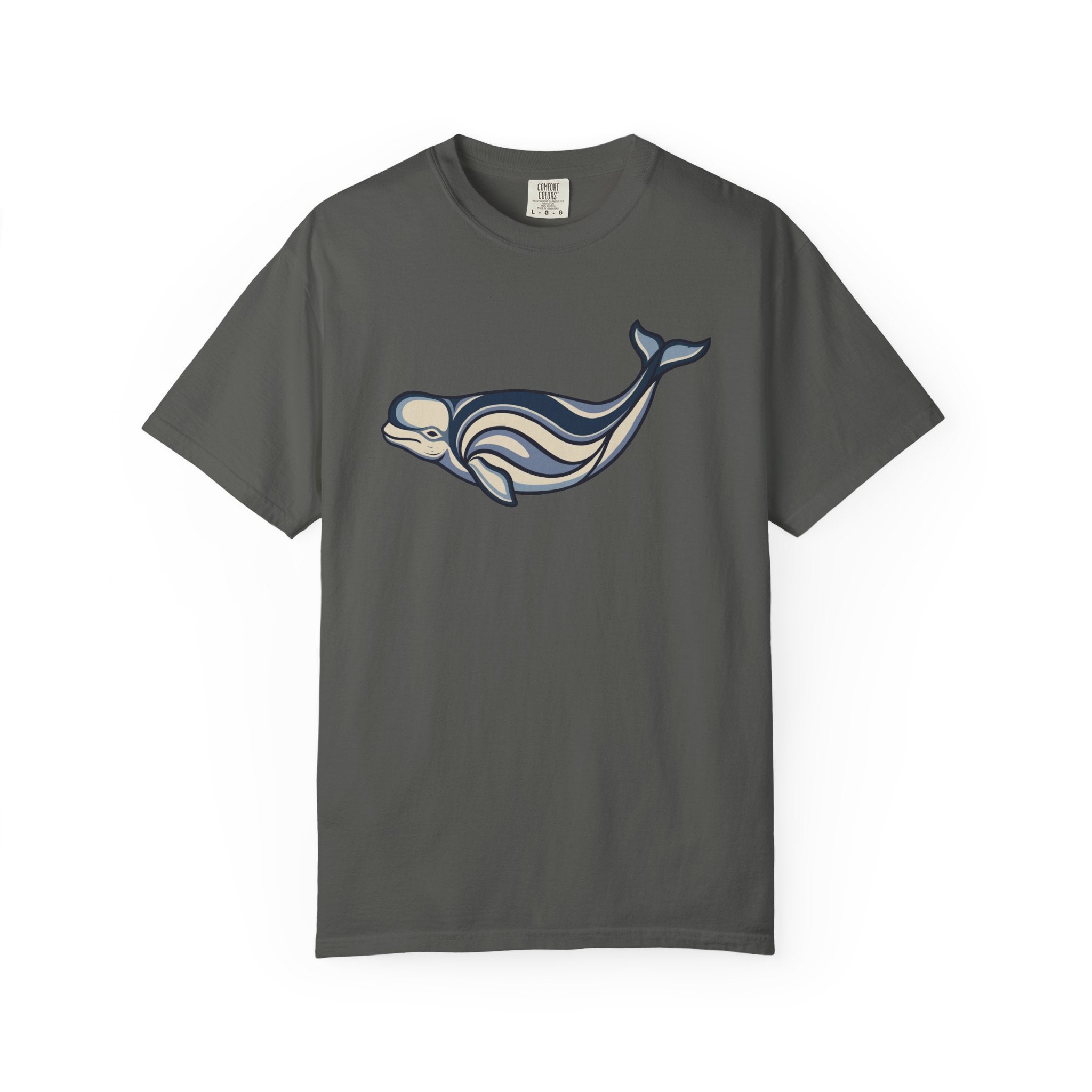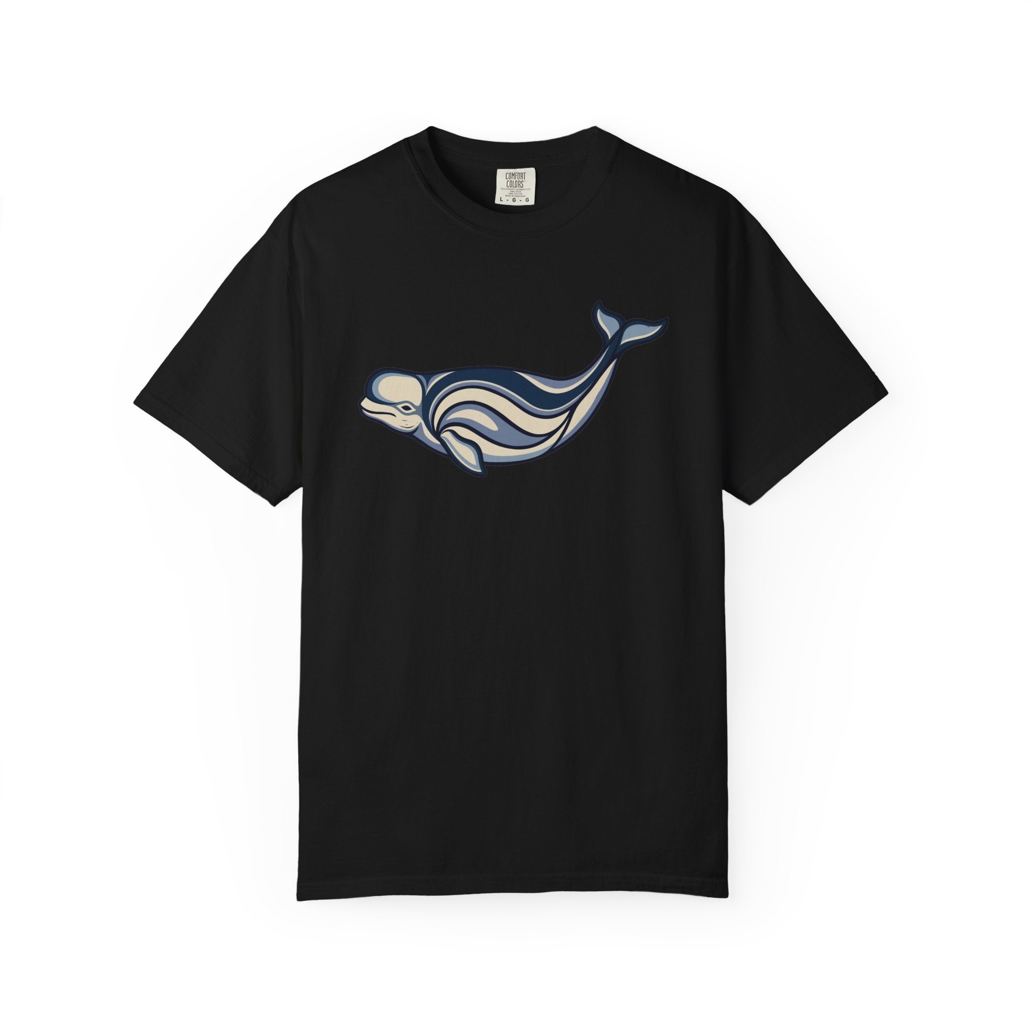 This t-shirt features a captivating stylized beluga whale design, rendered with graceful swirling lines and cool oceanic tones. The beluga whale, often revered for its intelligence and gentle nature, symbolizes purity, communication, and deep connection to the mysteries of the ocean. The intricate, flowing patterns evoke the rhythmic movement of water and ancient artistic traditions, making this design a unique fusion of nature and art. It's an ideal choice for those who appreciate marine life and meaningful, artistic expressions, bringing a sense of calm and wonder to your everyday wear. The design is elegant and thought-provoking, making it a conversation starter and a standout piece for any wardrobe.