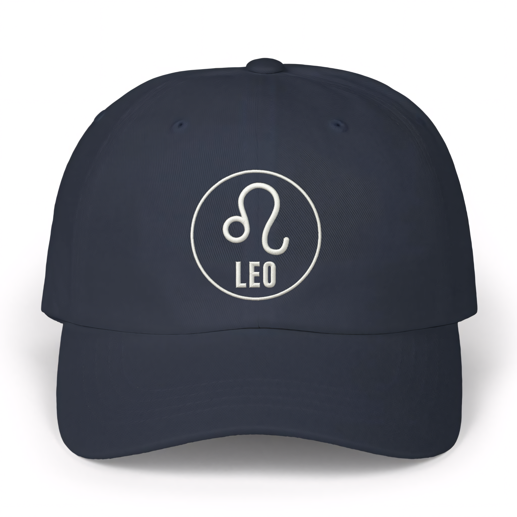 This hat features a crisp white embroidery of the iconic Leo zodiac symbol, elegantly encircled, with the word "LEO" boldly written below. The Leo symbol represents those born between July 23rd and August 22nd, embodying traits like confidence, passion, generosity, and natural leadership. This unique graphic is a proud declaration of one's astrological identity, celebrating the vibrant and regal essence of the Lion. It's a minimalist yet powerful statement piece, making it a standout addition for any proud Leo or astrology enthusiast.