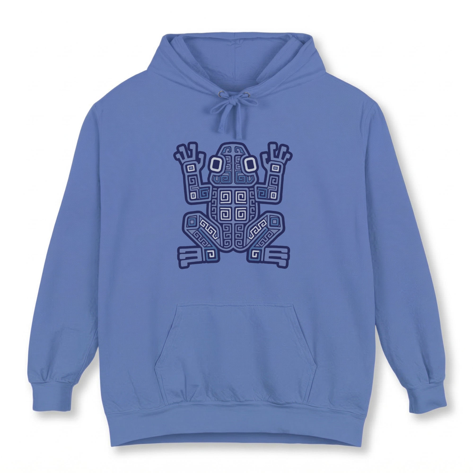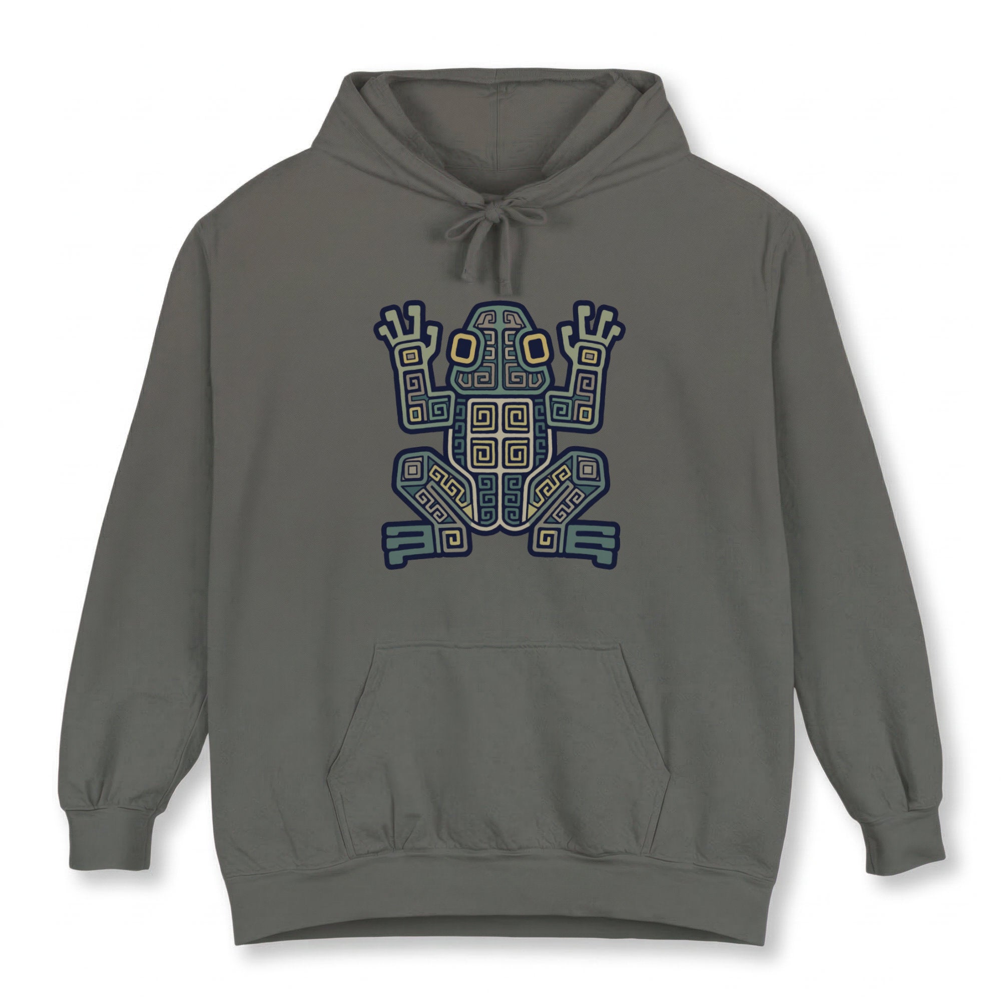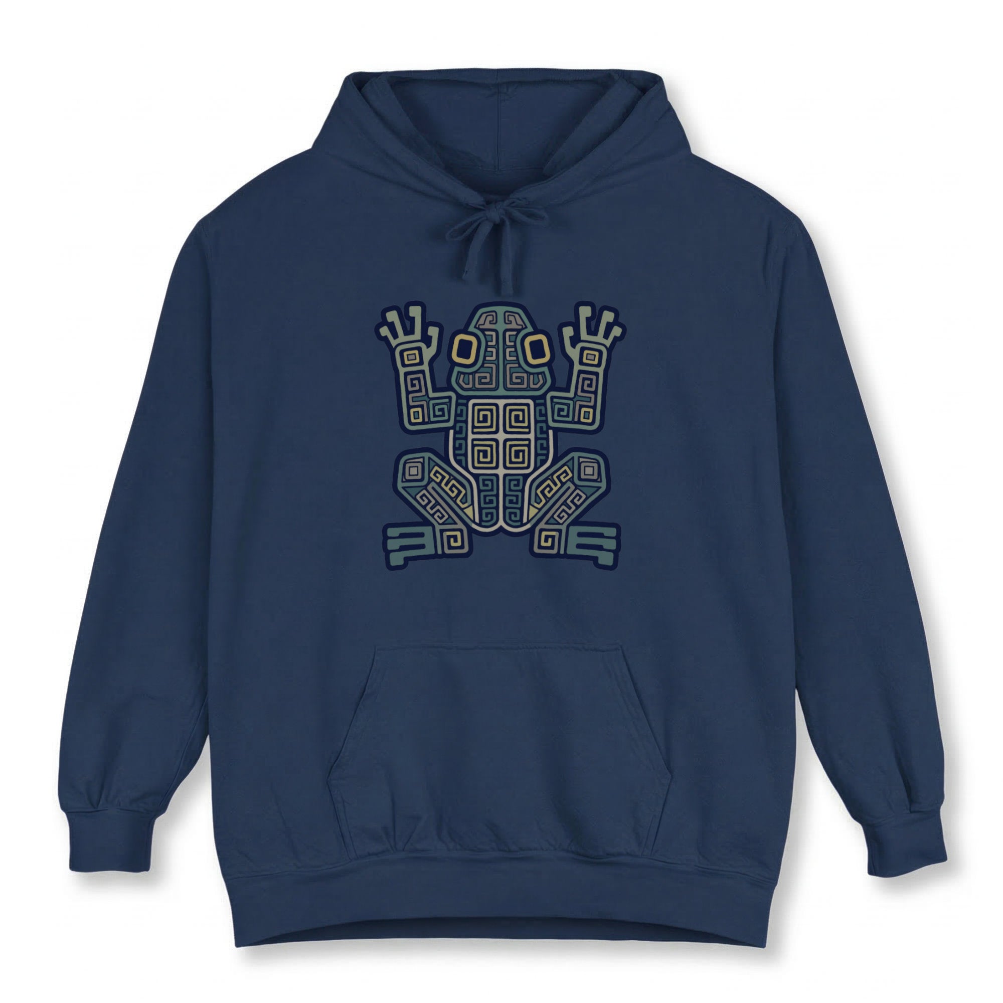 This hoodie features a captivating and intricate geometric frog design, rich with swirling patterns and angular motifs. Inspired by ancient totemic art, this stylized frog symbolizes transformation, renewal, and a profound connection to the natural world. Its intricate details and earthy palette evoke a sense of mystique and cultural heritage. This unique graphic is a mesmerizing conversation starter, making it a standout piece for any wardrobe.