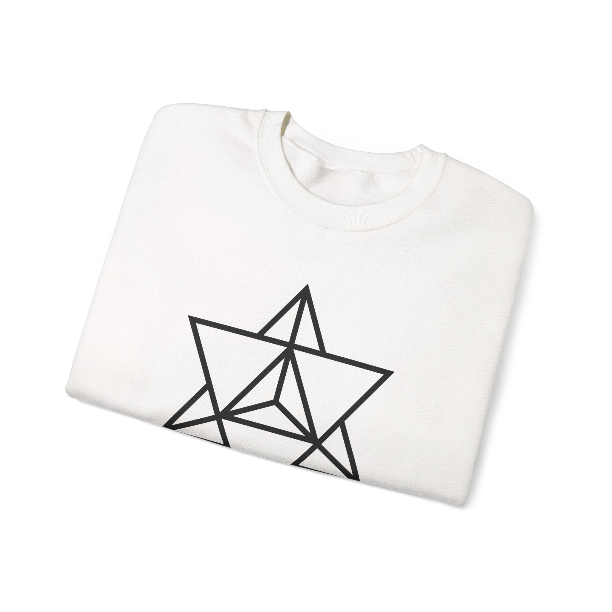 This sweatshirt features a striking white outline of the sacred Merkaba symbol set against a classic black background. The Merkaba, a powerful and ancient symbol found in sacred geometry, represents a divine light vehicle, spiritual ascension, and the perfect balance of masculine and feminine energies, body and spirit, and heaven and earth. This minimalist yet profound design is perfect for those who resonate with spiritual symbolism, cosmic energy, and ancient wisdom. It's a bold and meaningful statement piece that embodies harmony and enlightenment.