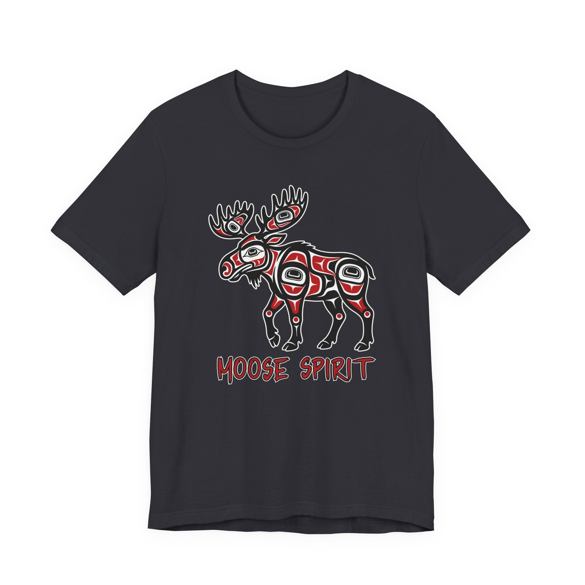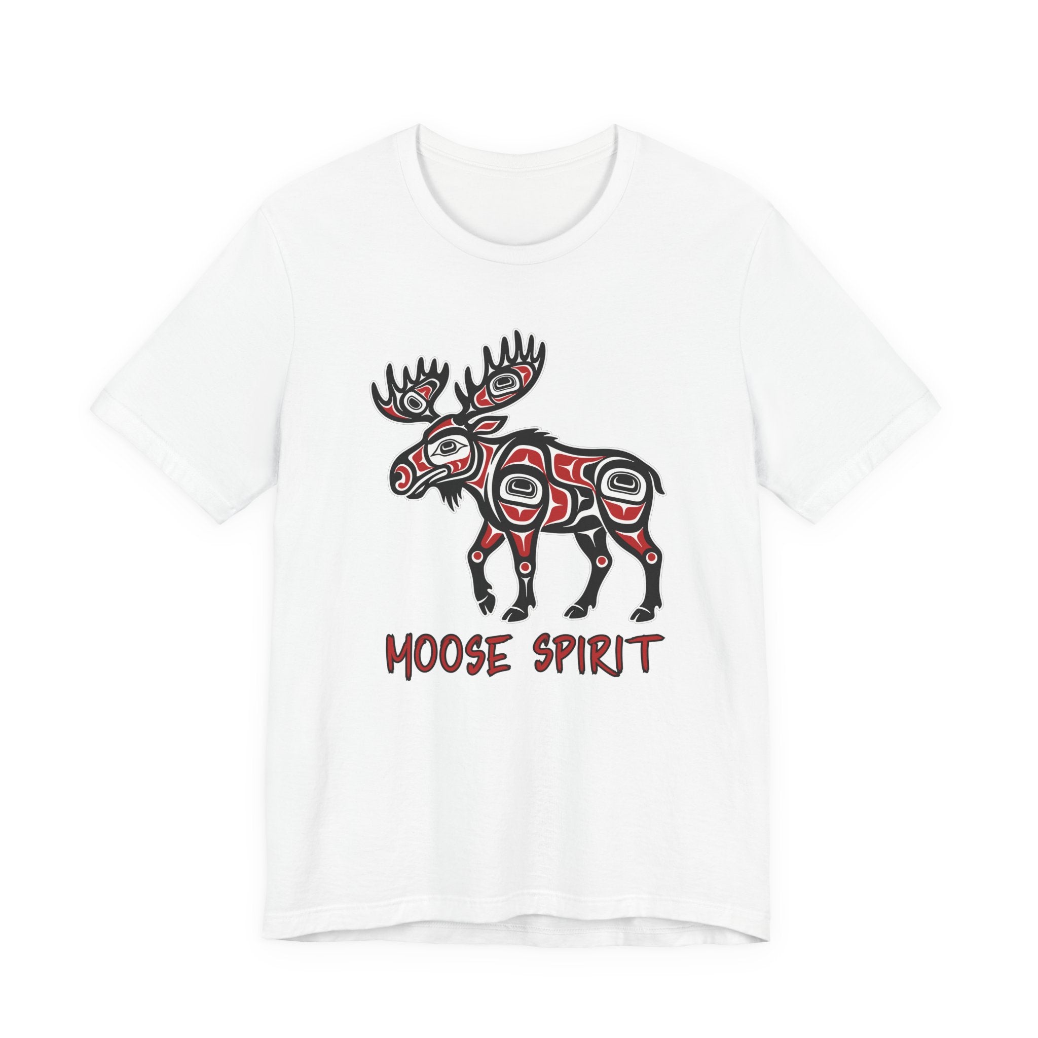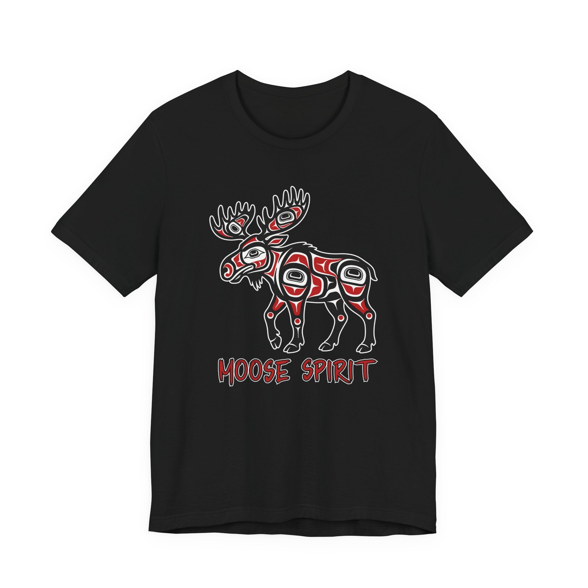Pair this striking t-shirt with dark wash jeans, cargo pants, or even a casual skirt to let the design take center stage. Layer it under a denim jacket or flannel shirt for an added touch of rugged style. Embrace the profound cultural artistry and the powerful "Moose Spirit" with this unique and meaningful addition to your wardrobe.