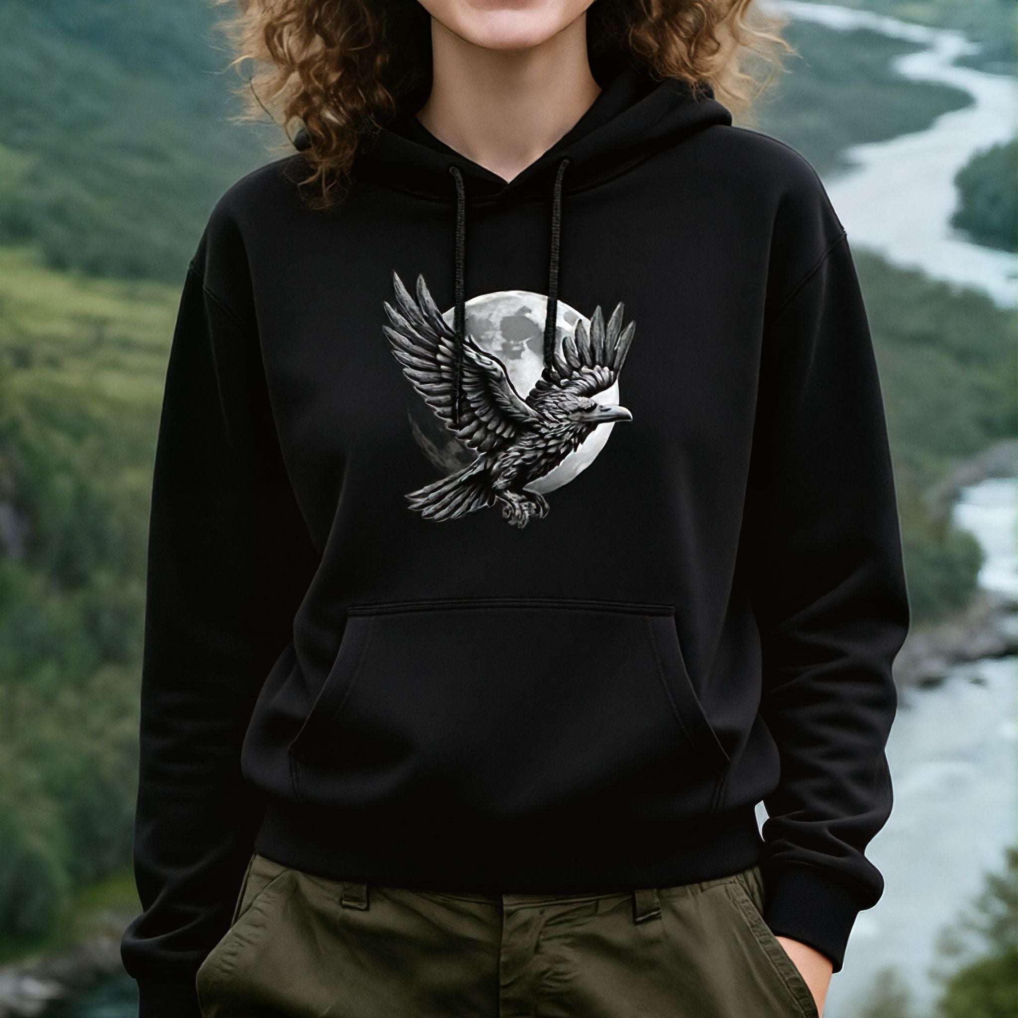 Pair this hoodie with jeans, cargo pants, or activewear for a look that's both comfortable and meaningful. The design is versatile, allowing you to showcase your connection to nature's majesty and inner strength. Embrace the powerful symbolism of the Moonlit Eagle with this stylish and inspiring hoodie.