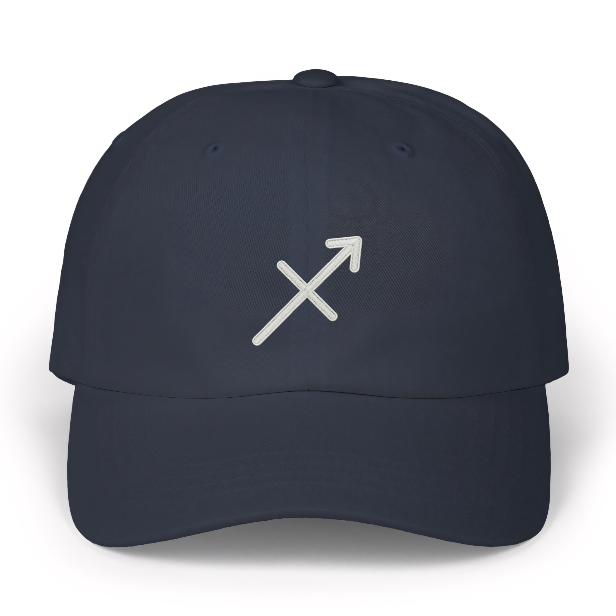 This hat features a crisp white embroidered design of the Sagittarius zodiac symbol on a classic dad cap. The iconic symbol of the Archer, represented by an arrow, beautifully embodies the adventurous, optimistic, and philosophical spirit of those born under the Sagittarius sign (November 22 - December 21). It's a subtle yet powerful tribute to wisdom, exploration, and a boundless love for freedom. This minimalist yet impactful design is perfect for those who connect with their astrological identity or simply appreciate celestial symbolism, making it a stylish statement piece for any wardrobe.