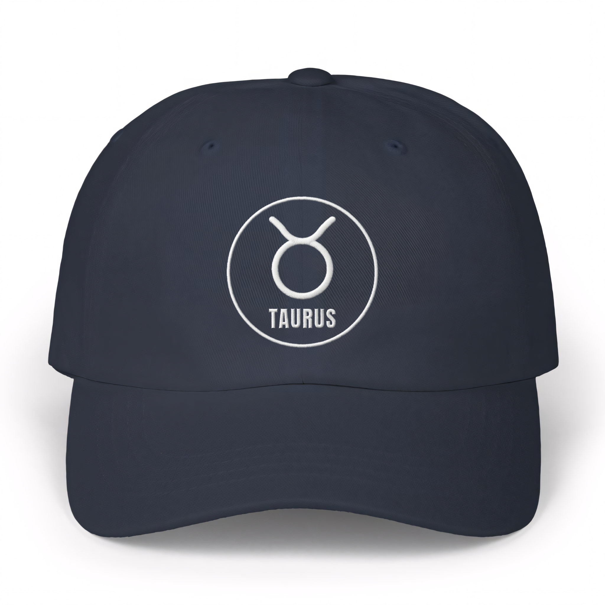 This hat features a crisp white embroidered design of the iconic Taurus zodiac symbol, elegantly encircled with the word 'TAURUS' underneath, all set against a classic dad cap. The Taurus symbol, represented by the bull, embodies traits like strength, stability, reliability, and a grounded nature. Governed by Venus, it also speaks to an appreciation for beauty and comfort. This design is a subtle yet powerful statement piece for those who identify with the enduring spirit of Taurus, making it a meaningful accessory for any wardrobe.