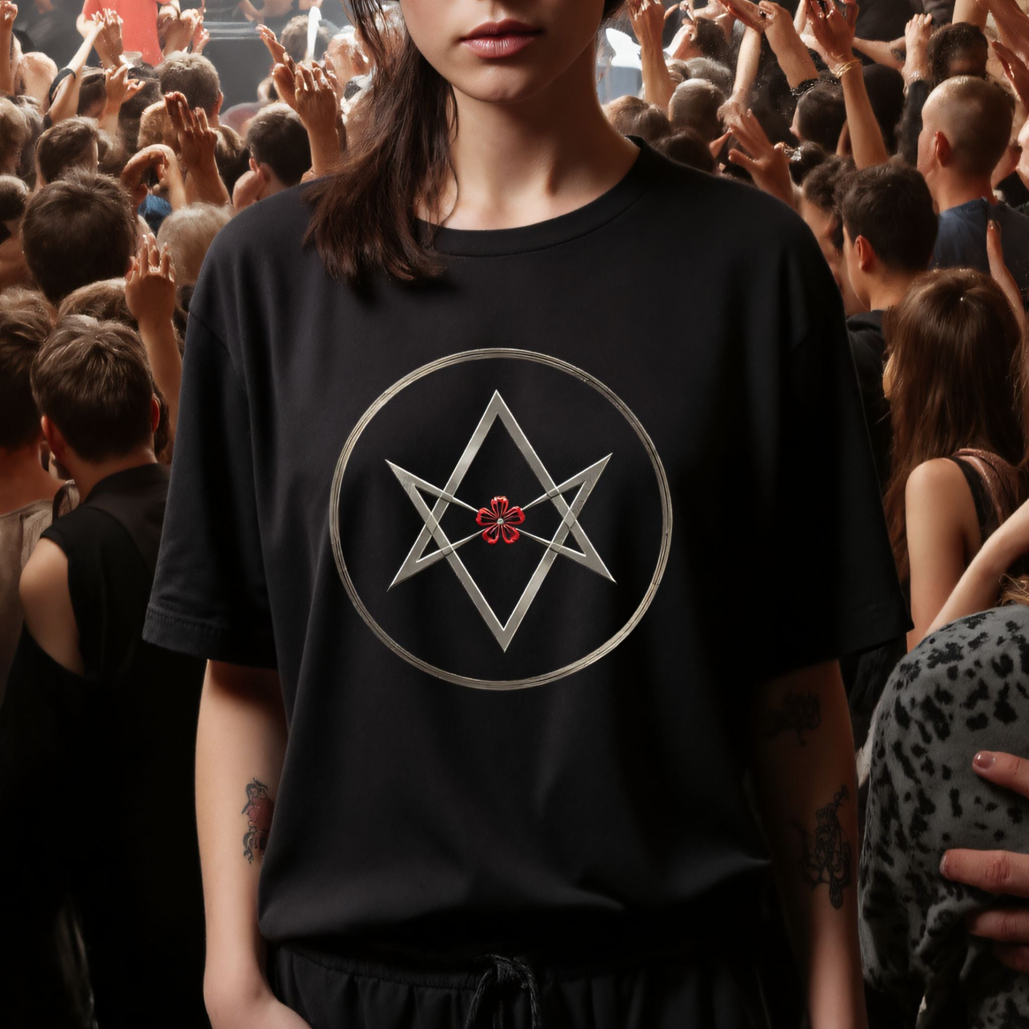 Thelema Hexagram Bloom - Unisex T-shirt ✨ Design Inspiration: This t-shirt showcases a striking silver Thelema Hexagram encircled within a... Read more