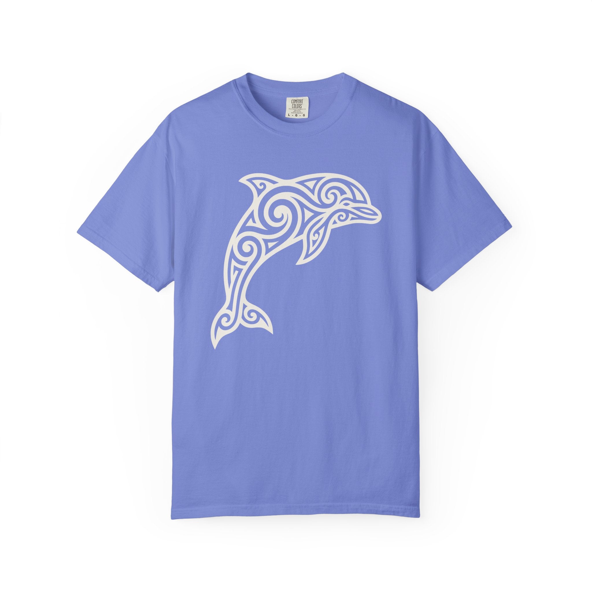 Pair this t-shirt with shorts or swimwear for a day by the water, or combine it with jeans and a light jacket for a relaxed, nature-inspired urban look. The design is versatile, perfect for expressing your connection to the ocean and its majestic creatures. Embrace the beauty and symbolism of the dolphin with this stylish and unique t-shirt.