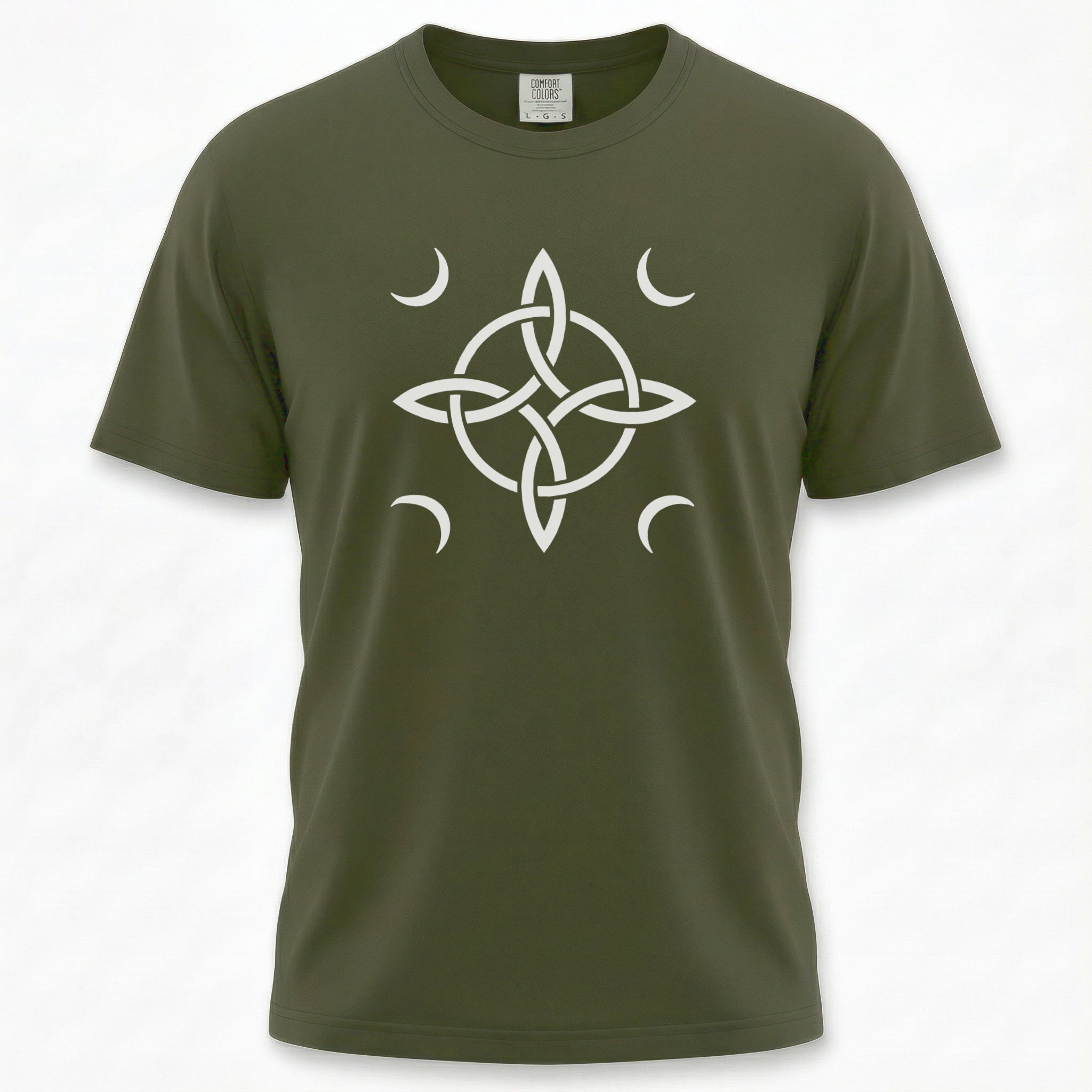 Pair this meaningful t-shirt with jeans or shorts for a casual look, or layer it under an open shirt or jacket for a more intentional ensemble. The design is versatile, allowing for various styling options. Embrace the protective and intuitive energy of the Witch's Knot and crescent moons with this stylish and spiritually rich t-shirt.
